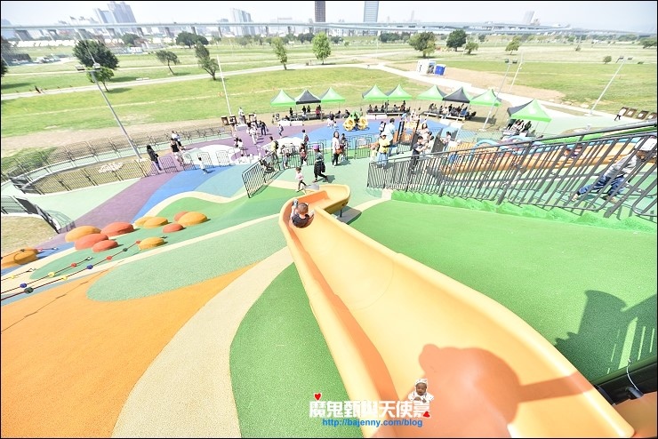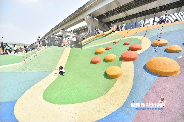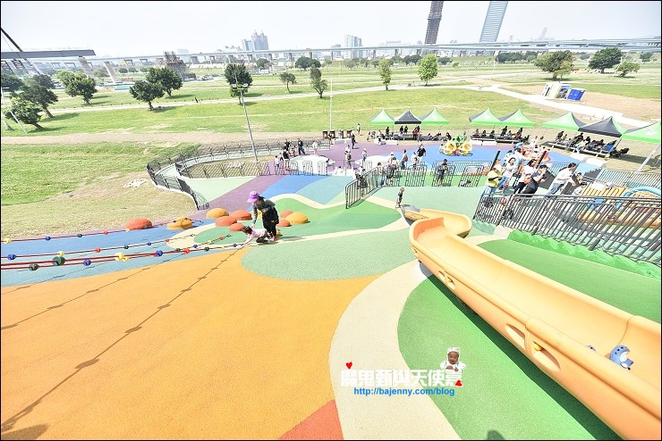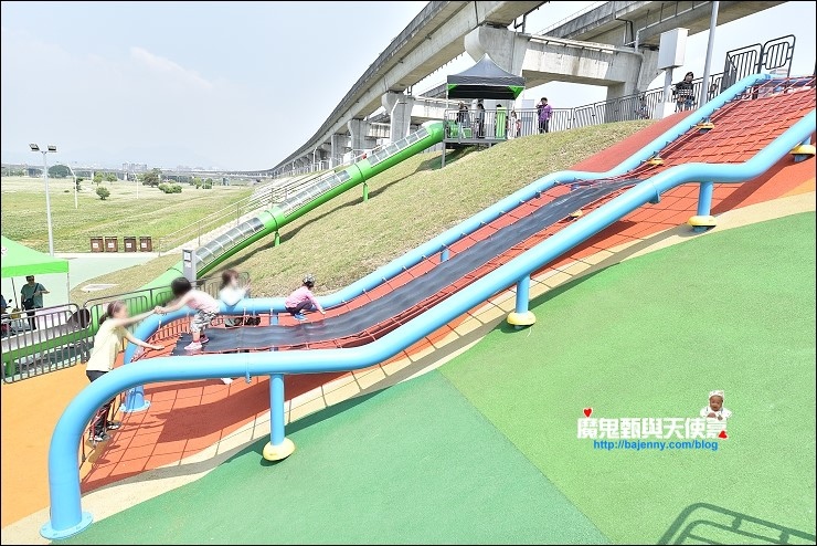 大台北都會公園7公尺高的幸運草主題溜滑梯應該是兒童清明連假最夯的新景點,聽說4/1昨天開幕擠滿了大小朋友,台北捷運和機場捷運三重站出站即達,除了7公尺高的溜滑梯之外,還有雙層加大碗公溜滑梯和攀爬架等7種共融式遊具,鳥大叔個人覺得已經有點接近之前飛沖繩拍的幾個公園溜滑梯規模,帶小孩來容易,但小孩一玩開,要拉小孩走不容易啊~~