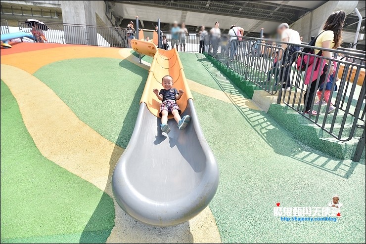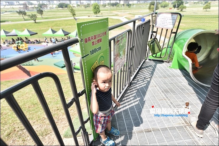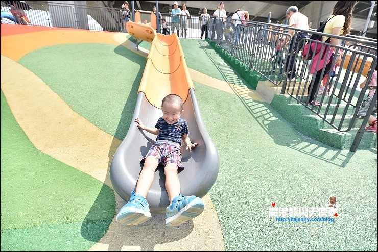 大台北都會公園7公尺高的圓弧溜滑梯,身高要100公分以上才能溜,逑董差一咪咪殘念~~