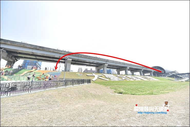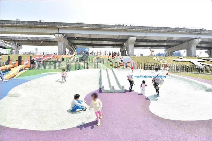 《三重景點美食》機場捷運三重站出站即達的超熱門無料新景點~大台北都會公園7公尺高的幸運草主題溜滑梯,還有磨石子大碗公溜滑梯,照明開放到夜間10點!