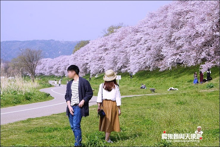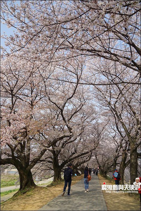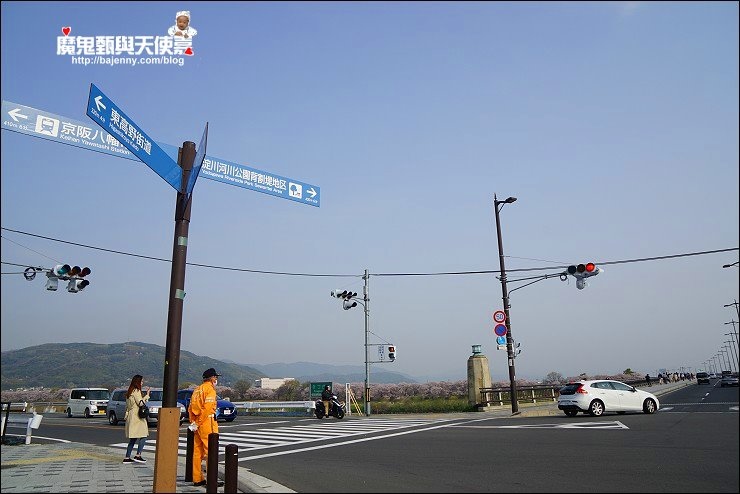 八幡市淀川河川公園背割堤交通京阪電車八幡站,出口左轉一直走就會看到橋了,很多人來賞櫻,跟著人潮走也行!