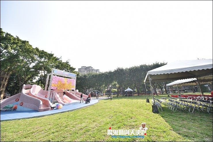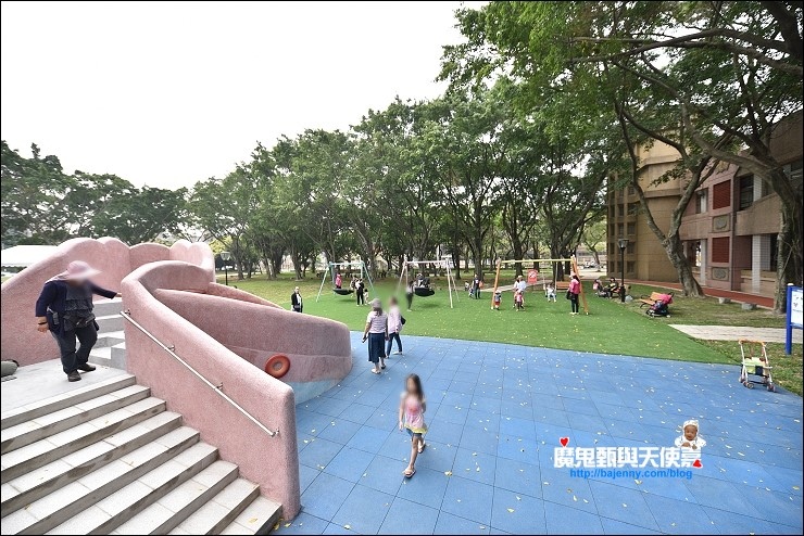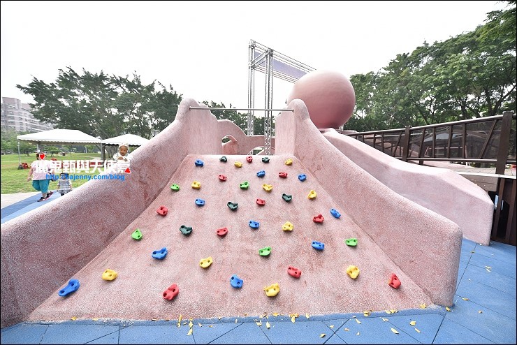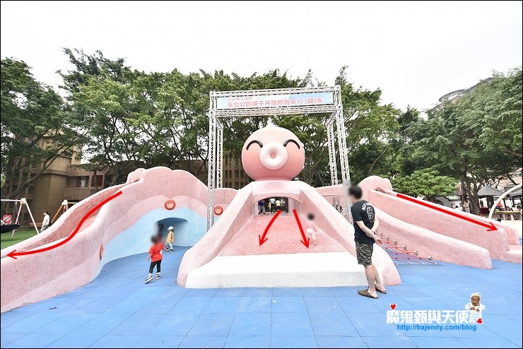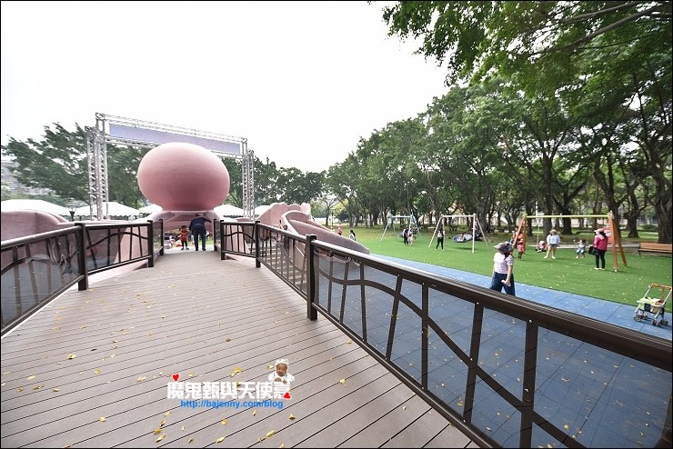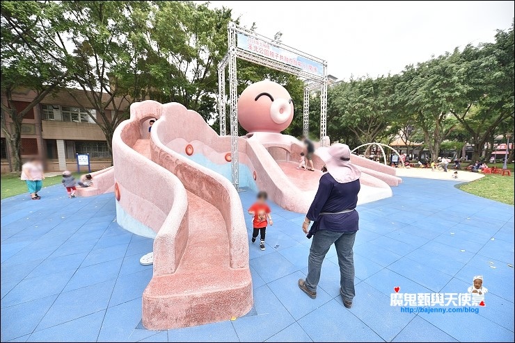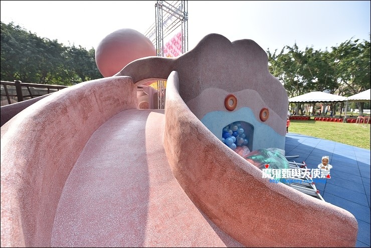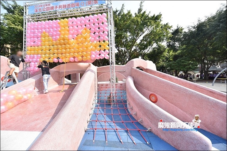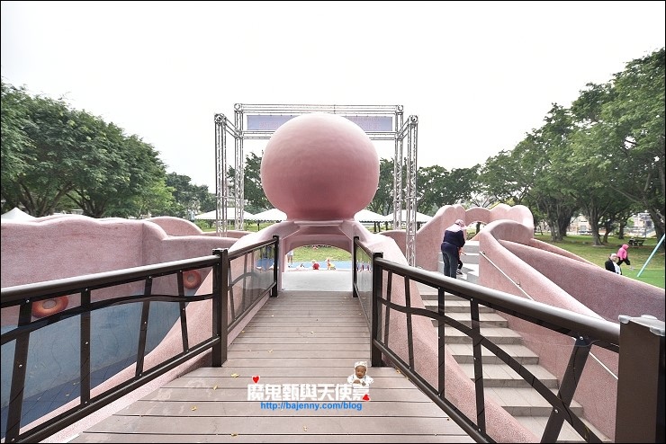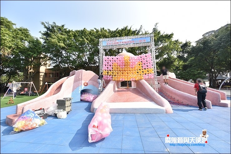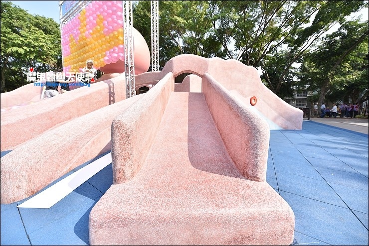 除了大型Q版章魚溜滑梯之外,旁邊還有沙坑攀爬架洗腳池、鳥巢式盪鞦韆等新的共融施具設施,大叔團今天早上路過已經拆除圍籬,可愛章魚被氣球遮住等市長剪綵開幕後才露臉。