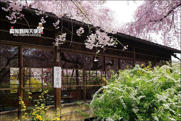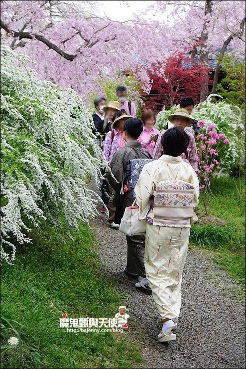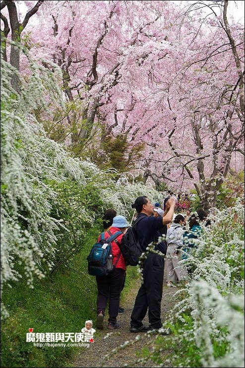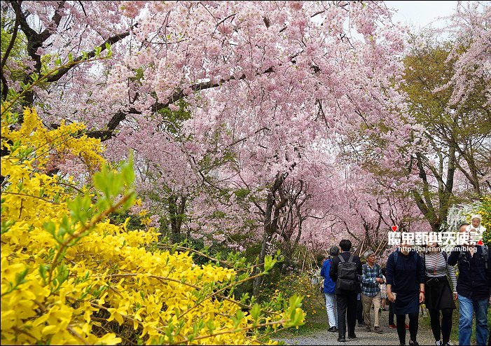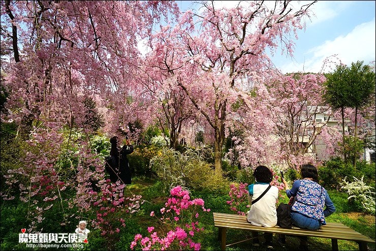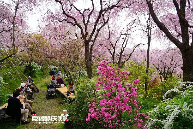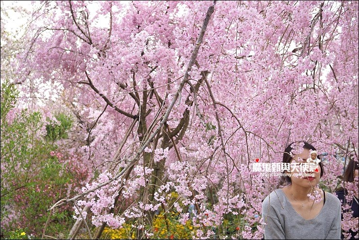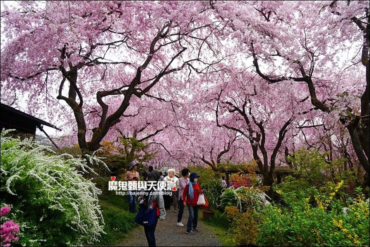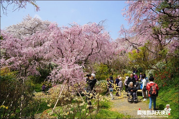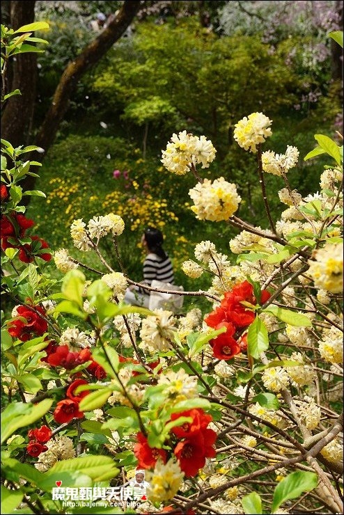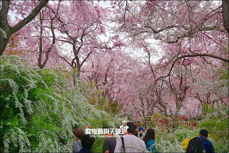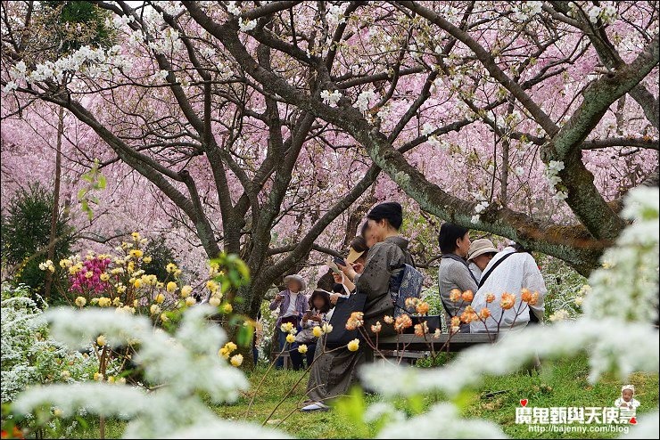 花種眾多,吉野櫻、黄櫻、枝垂櫻、紅枝垂櫻、御室櫻、雪柳、紅梅等等,花園裡顏色豐富、層層疊疊好迷人。