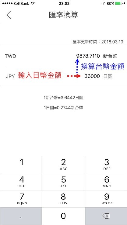 另外也有匯率換算,頭腦轉不過來不知道換算台幣多少錢,直接點開匯率換算,輸入日幣金額,就知道換算台幣是多少錢啦,另外也有其他不同幣別的換算,去韓國或歐美也都可以用。