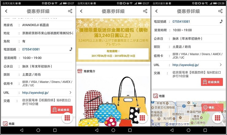 京都是我很喜歡的日本城市之一,每次來到關西一定會進京都走走。這間匠人手工製作的AYANOKOJI金口包專賣店,可愛的珠扣式設計,是京都必買好禮,暢遊日本app裡頭有它家的優惠券吔,滿3,240日幣就送迷你版小零錢包,歐~這麼好康的優惠一定要來拿!!我已列好要買的名片夾、化妝包跟送媽媽的手機包!