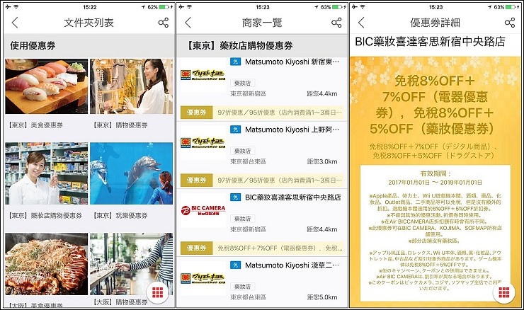 在日本旅行時一定要打開暢遊日本APP,不少優惠好康可以撿,大家必去的藥妝店跟Bic Camera都有優惠券可領,不但享有8%免稅,還可以有其他優惠,省下來的錢還可以去吃頓好的!