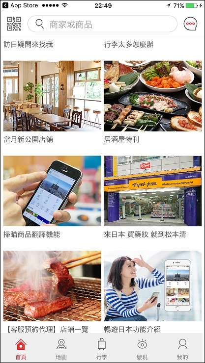 暢遊日本APP在ios及Androi系統手機都可以免費下載,中文介面很好上手,提供的資訊不少,美食、購物、優惠券、電車換乘、行李寄放、匯率換算,連商品條碼掃一下就有中文簡介說明,更厲害的是線上客服功能,簡直是私人秘書等級,超好用。