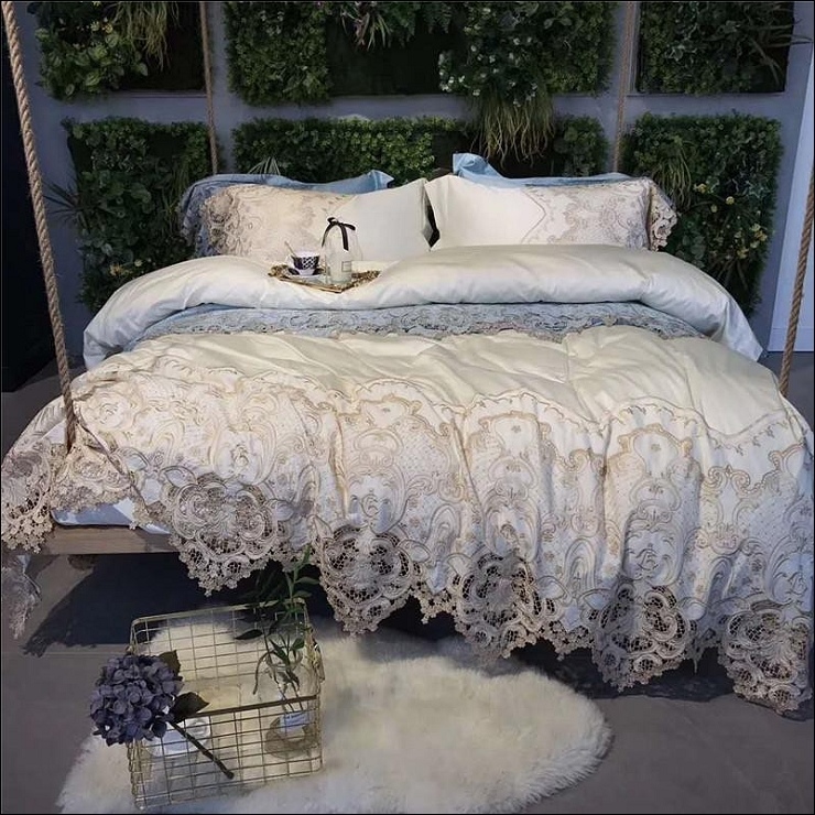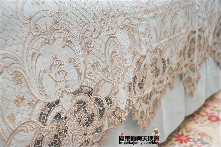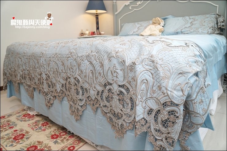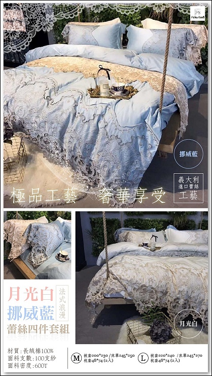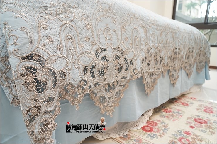 只要是女孩都喜歡蕾絲的浪漫華麗,有網友說與另一半躺在上面就像王子公主一樣的幸福!!一圓每個女孩心中的公主夢…但大家一定很怕勾到,洗的時候一定要套洗衣袋的啊,聽說很多人都不放心拿去送洗!這款的蕾絲花邊只做在兩個地方,棉被套下擺整片蕾絲雕花片及半邊枕套處,不會太累贅花俏,仍保高雅氣質,也不容易去勾到。