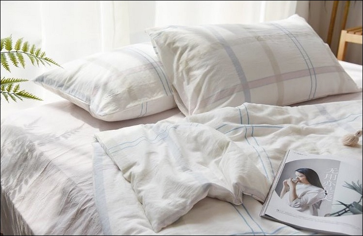完全是為喜歡素色簡單的媽媽所挑的!床單配的是淡雅的粉色,很無印簡約風對吧,顯年輕的一款,而且麻棉的材質適合四季。