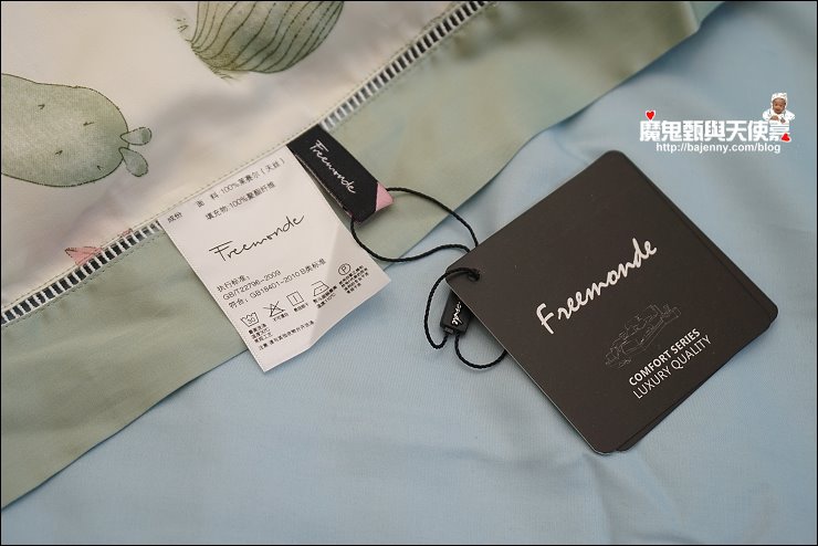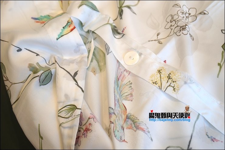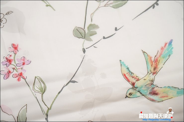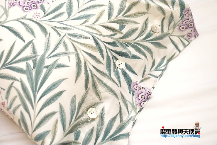 裡面有一隻好像是彩虹鳥(童話書是彩虹魚XD),這款不止觸感絲滑,連視覺也好清爽,被套是利用開扣方式。