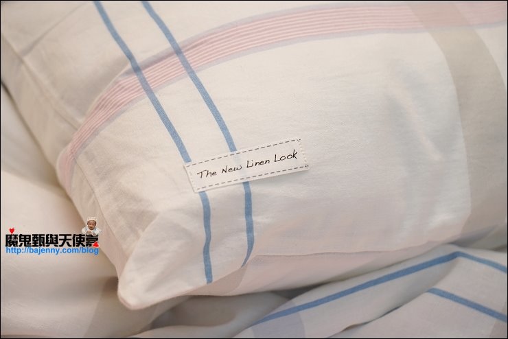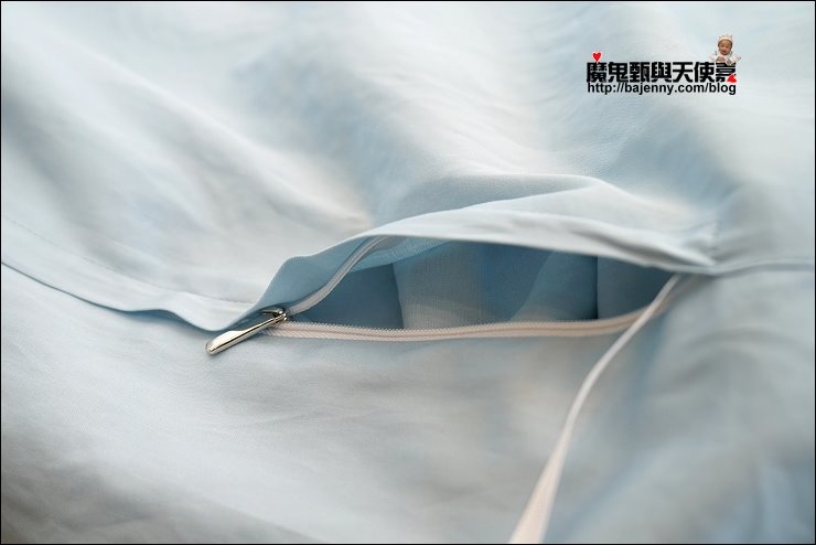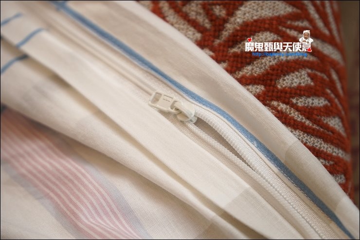 兩個枕套正面都有車布標,被套也是拉鏈形式,套子裡面四個角都設有綁帶,是說我最不會裝棉被了,時常長寬那一邊傻傻分不清,每次換完都滿身汗XD