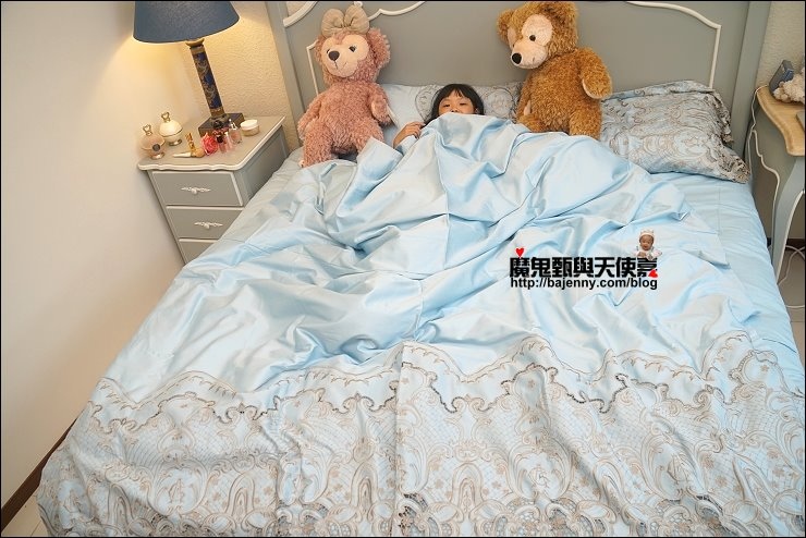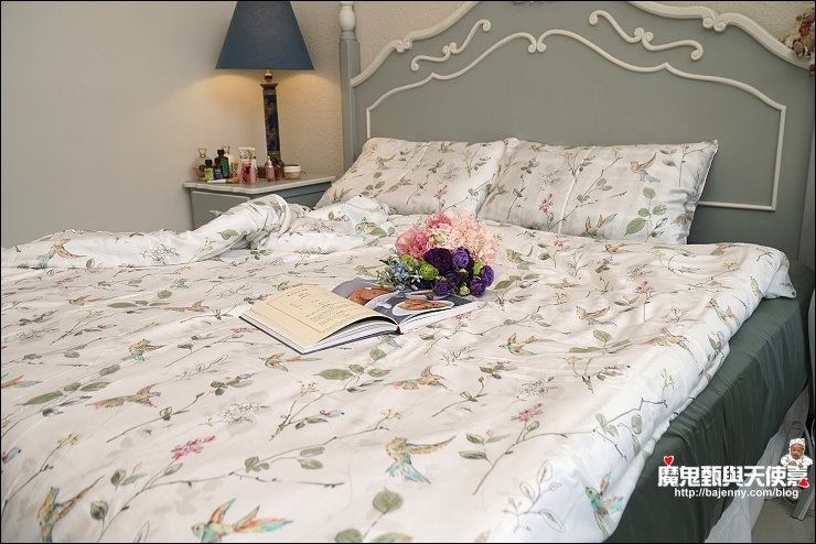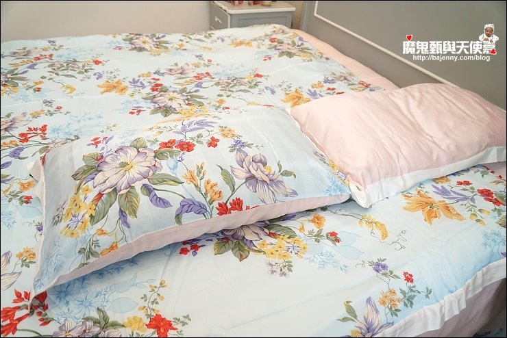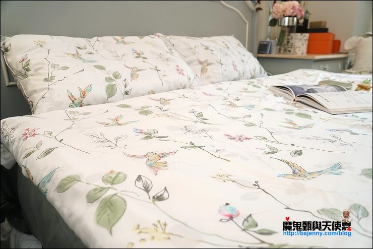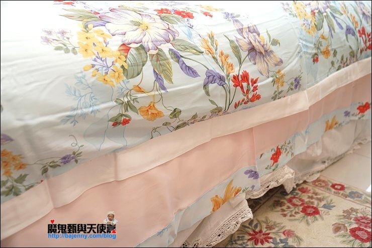 必須老實說,我真的每天待在床上很久的時間啊~~不止睡覺,常常打電腦上網、追劇都窩在上面(就是沒有看書XD)!舒服的床組對我很重要!!我們跑團隊長夫人說用過天絲床組就回不去了,因為天絲觸感很細嫩柔順,尤其她都習慣裸體睡,感受度更深XD