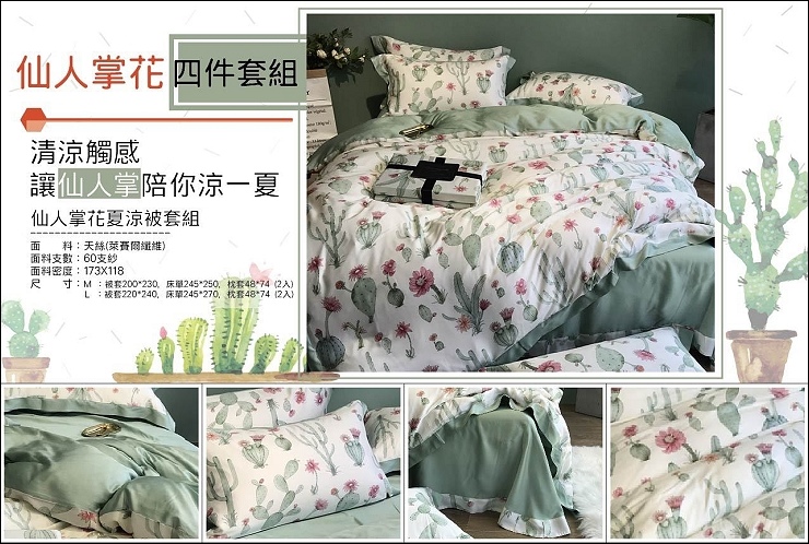 這組仙人掌花是妹妹第三喜歡的花色,但廠商寄錯,最後僅收到一條涼被@@,只能拍個意思意思XD,也只能請大家參考廠商的照片,另外要提醒電腦作業難免有色差,請以收到的實品為準。