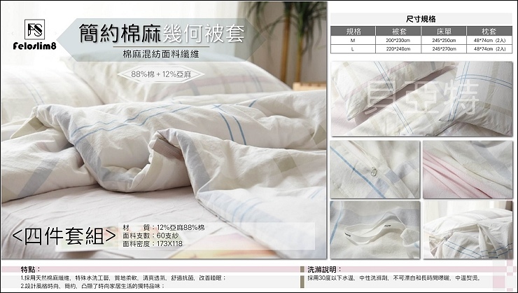 這組簡約棉麻幾何被套是全部裡面唯一的棉麻代表,而且最樸素日系風的一款!跑團隊長跟好姐妹都投它一票!