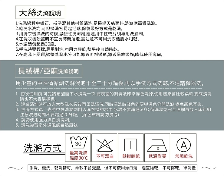 妹妹一直說仙人掌花涼被好舒服喔,死抱著不放XD,有人私訊問我床組的洗標為何,是否可以烘乾?這團的床組都不能烘乾,尤其天絲床品最好不要烘乾聽說容易泛黃。網路上也建議不要用熱水浸泡,隨浸隨洗,因為高溫和擠壓容易導致面料起皺,洗滌劑及柔軟劑最好用中性的,晾曬的時候最好平鋪懸掛晾曬,不要脫水太乾,水的重量會使面料在晾曬時平整不皺。