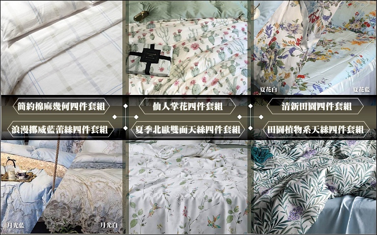 這次的床組包裝如第一張圖,幾乎都有附提袋(棉麻那組沒有,但我們會另外提供),其中夏季北歐那組沒有密封僅紙袋裝,我們覺得不妥會另外套袋加工,蕾絲那組還多了盒裝跟緞帶,送禮體面有誠意,母親節感恩季送禮首選之一!!有人問我這些床組的品牌,老實說我也不知道有不有名?我的訴求點是花色要好看且俱備質感!也不熟悉韓國品牌,不過還是會列出來供大家參考。