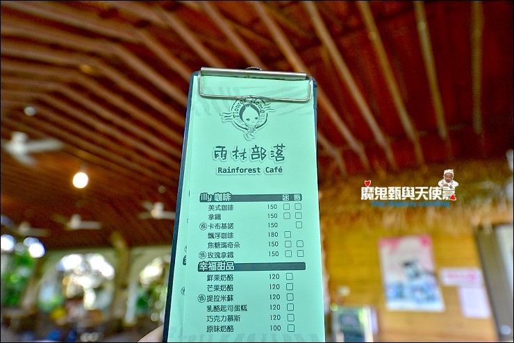 大叔團是到雨林部落用掉門票抵100元消費,這裡的咖啡和甜點訂價大約100元~180元,門票可以完全抵,在這裡用掉還不需補太多錢,聽說精油商品和套餐就要補比較多一點。