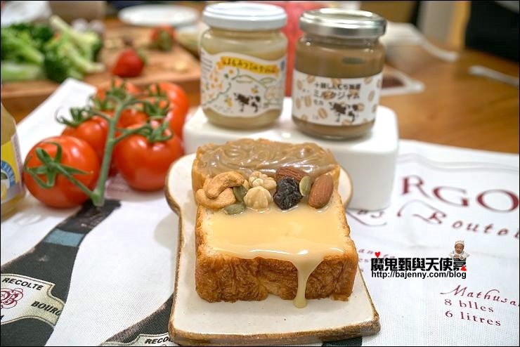 北海道十勝牛奶醬的成份只有鮮乳與甜菜砂糖,保有北海道鮮乳濃縮後的風味,又不會對身體造成負擔,我早該拿出簡介好避免隊長碎碎念XD,可以做為抹醬,直接塗抹在麵包、鬆餅,貝果等食材上,我甚至奢侈的拿來做熱壓吐司,聽說也可以用熱水沖泡成為飲品,加入咖啡中更增添風味,共五種口味:奶香原味、香甜蜂蜜、濃郁可可、日式抹茶及摩卡咖啡。
