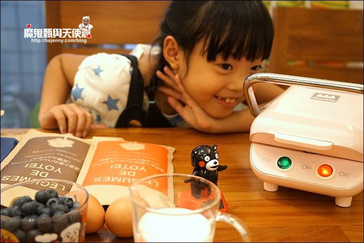 這個年紀的小孩最愛幫忙了,你叫她做什麼都會很仔細做(藍莓一顆一顆擦),絕對不會偷懶,因為有幫到忙自己也會很有成就感喔,妹妹在等待的時候一直說好香好香,超陶醉的~~