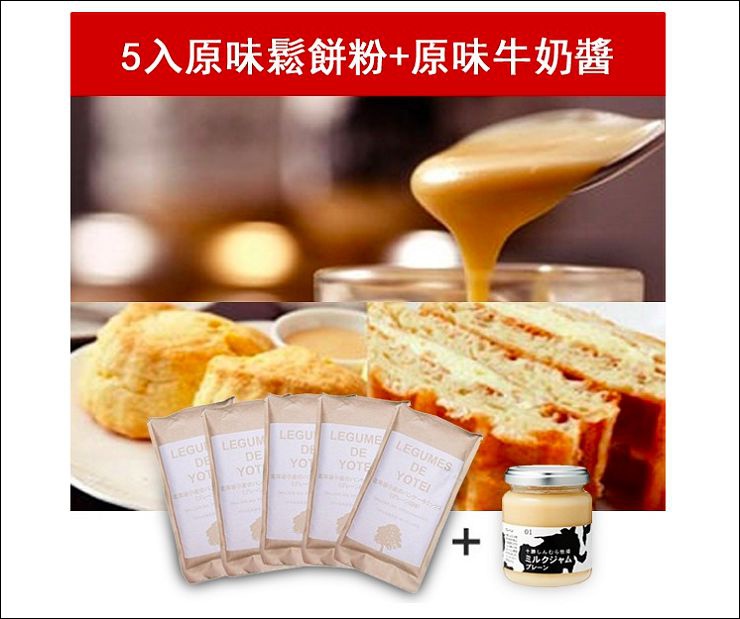 (1)「原味五入鬆餅粉+牛奶醬原味口味」優惠價$1,000元---限量50組;