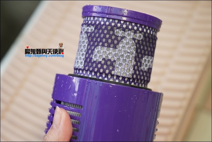 機身後方的瀘網直接就可以轉開,網路上不少人分享將透明殼跟濾網水洗過再陰乾24小時沒問題。