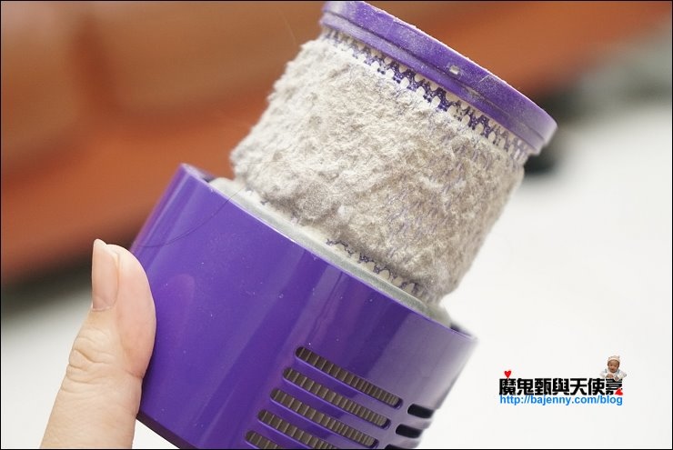 以前使用吸塵器時最受不了就是一直要換地方插電,吸高處時另一手還得手扛機器,Dyson的全機過濾系統,完全密封的系統滴水不漏,可鎖住99.97%小至0.3微米的微粒,排出更乾淨的空氣,終於吸塵不需擔心微塵致敏原飄揚或重複排放,而且吸力不減,使用低段且非電動吸頭可以執行一小時的任務,以前牆角根本不可能清得到,現在也輕而易舉XD,真的是上天下地都OK~~