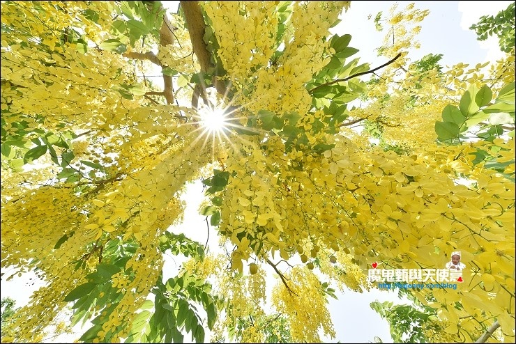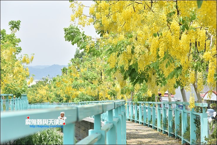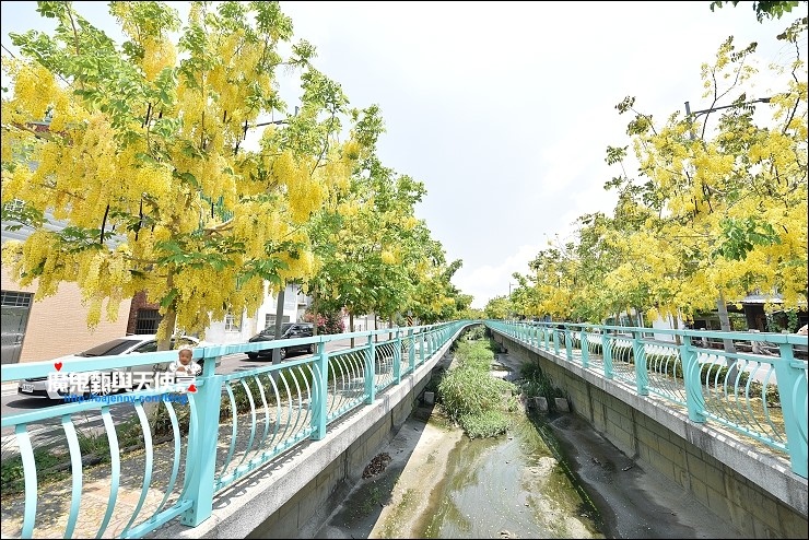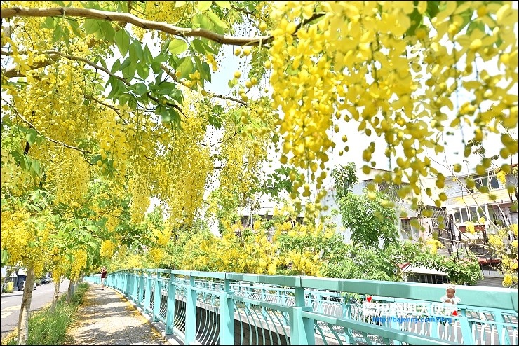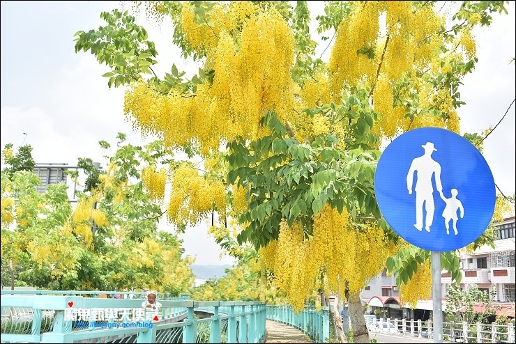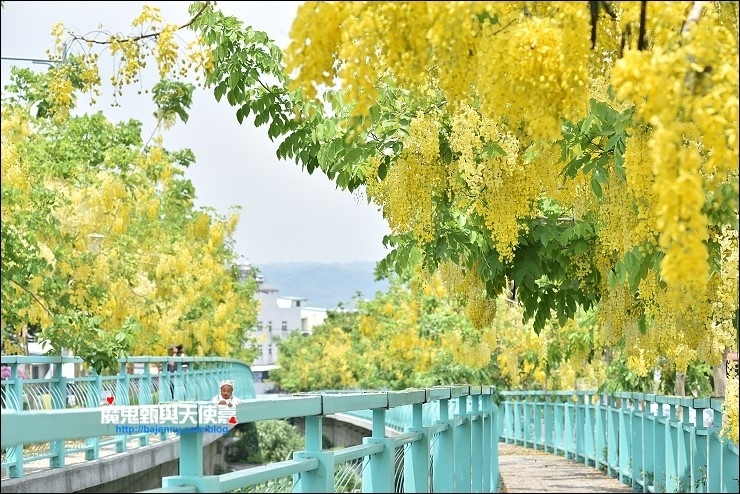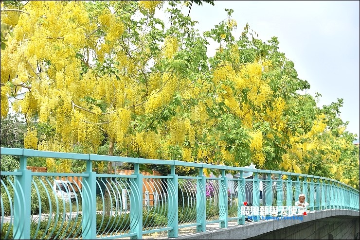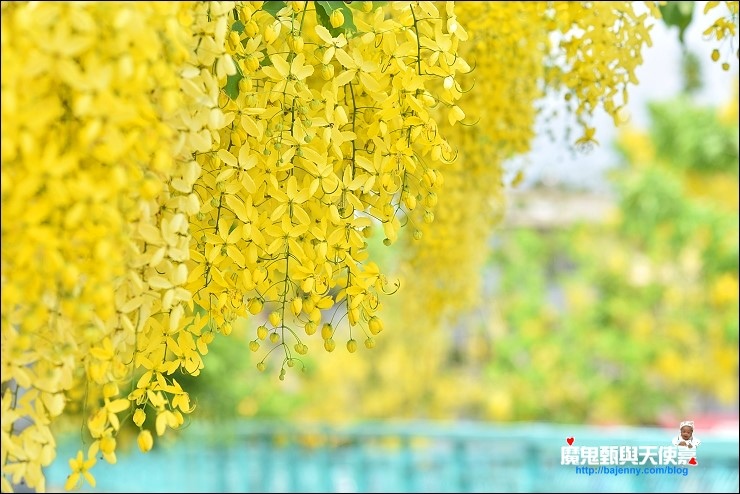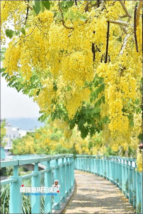 南投福崗路一段的阿勃勒目前滿開中,金黃花串搭配中間的帝芬妮藍還是湖水綠的欄杆感覺很好拍,所有花都集中在台3甲彰南路和台3線南崗二路之間(路口有間漢堡大師),這段路說長不長說短也不短,附近就有交流道交通方便也很好停車,不過整條路非常曬,請注意防曬和飲食補給。