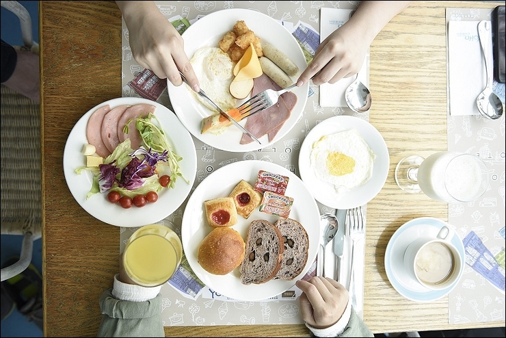 悠活獨創的自然醒早餐,用餐時間延長到中午12點,讓大家可以睡到自然醒再起床到270度海景餐廳吃早午餐,感覺很貼心,也是悠活渡假村的特色和賣點之一。