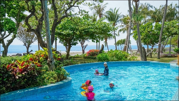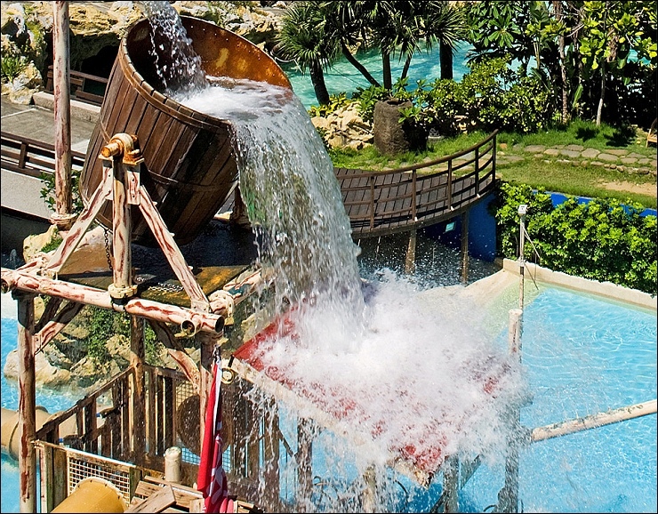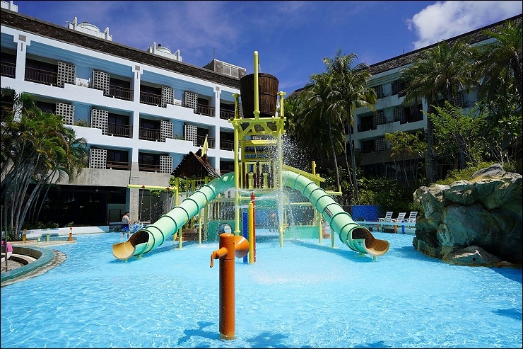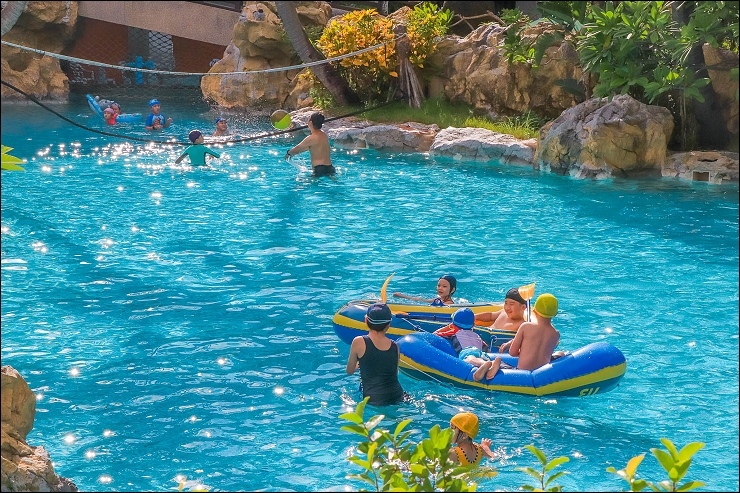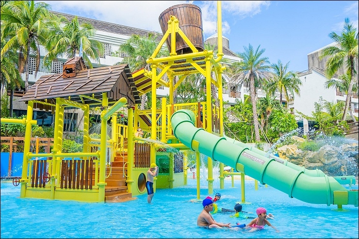 認真玩水放電溜小孩,提供60多項水陸活動設施,最愛歡迎的超大兒童池(溜滑梯、大水桶、噴射水柱)、大朋友最愛的懶人河(躺在泳圈放空最消暑)、刺激的海景滑水道,飯店還可以直通沙灘、潮間帶。
