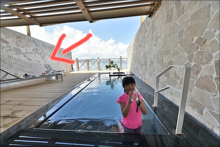 難得分享一張鏡頭下的花絮照片,因為被眼尖的後壁湖永豐棧公關發現我夾帶商品入住XD,就在妹妹天真玩水的同時,苦命的我卻在旁邊揮汗拍照啊orz...
