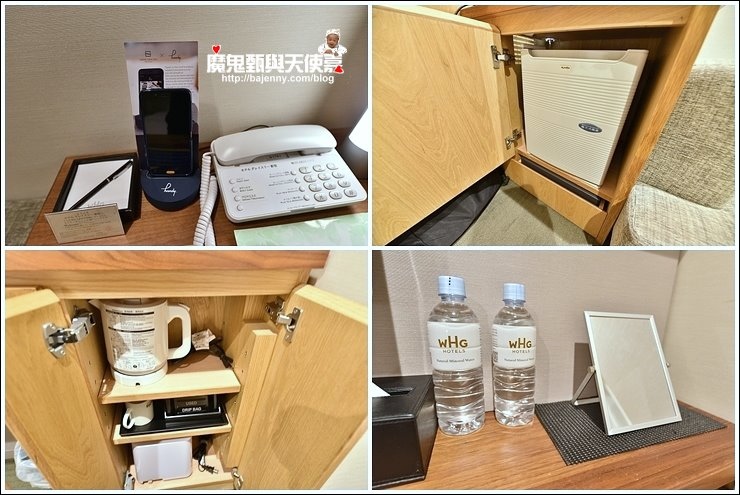 很巧的是兩間飯店都有提供瓶裝水及免付費可外連之手機,如果沒有辦國際漫遊或帶wifi機,帶著出外查資料很方便。