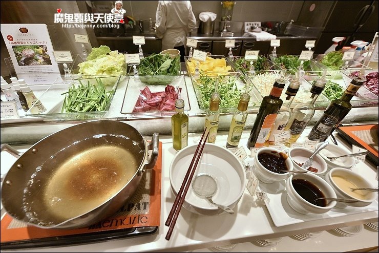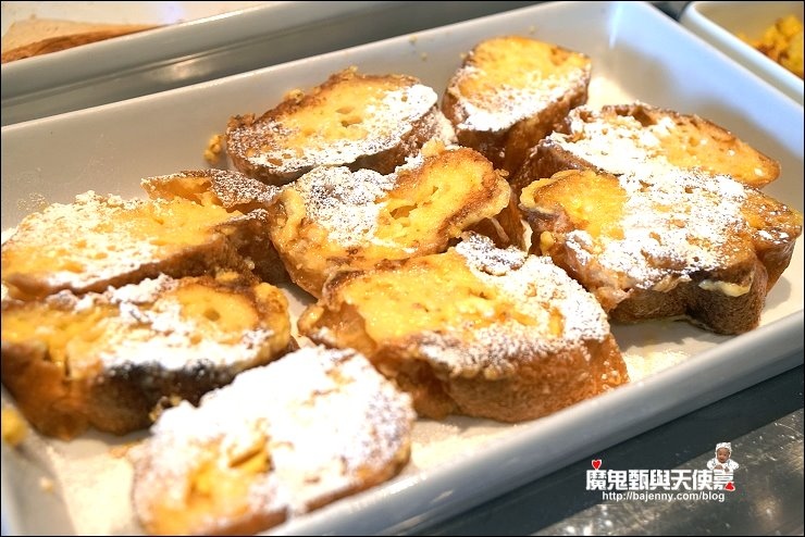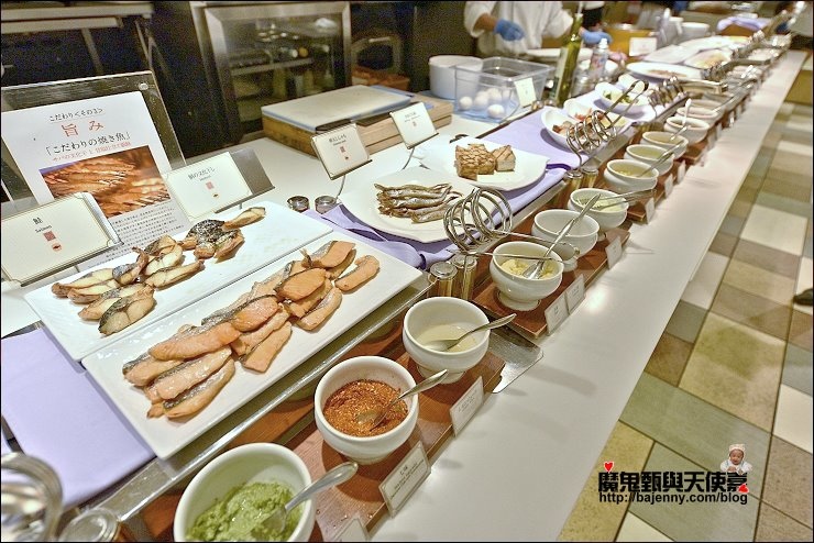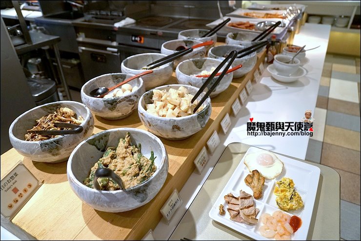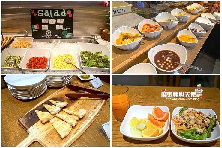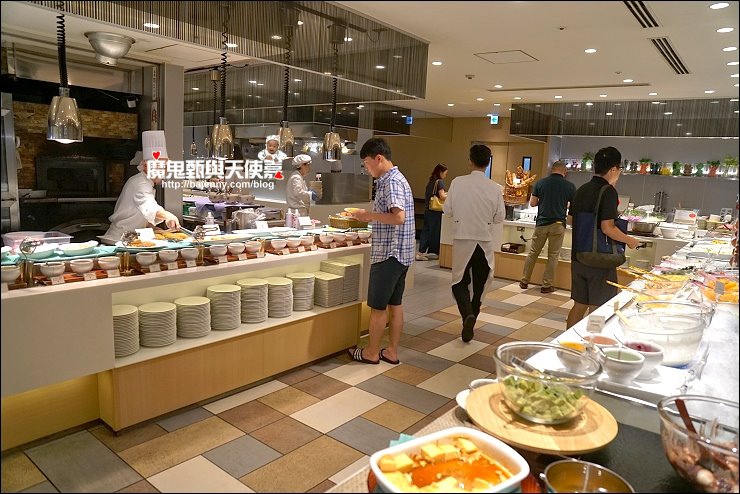 一樓的餐廳多了日式早餐選擇,沙拉甜點及水果樣式更多,還有現烤麵包與PIZZA,如果像我們住三天的人,一天選一種體驗沒煩惱,但如果只有住一天,真的要好好傷一下腦筋了:P