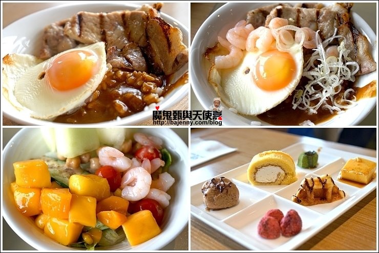 還有以富士熔岩石做為窯烤基底的料理,如牛排/豬排/魚排/干貝/蝦仁等,我們直接來個咖啡牛排蛋包飯是不是很過份!!就連自製的水果鮮蝦沙拉也是整個可口到不行!這間早餐激推啊~~