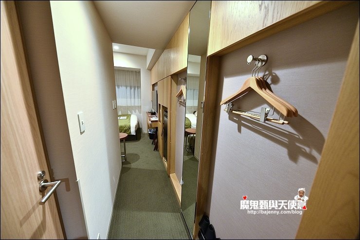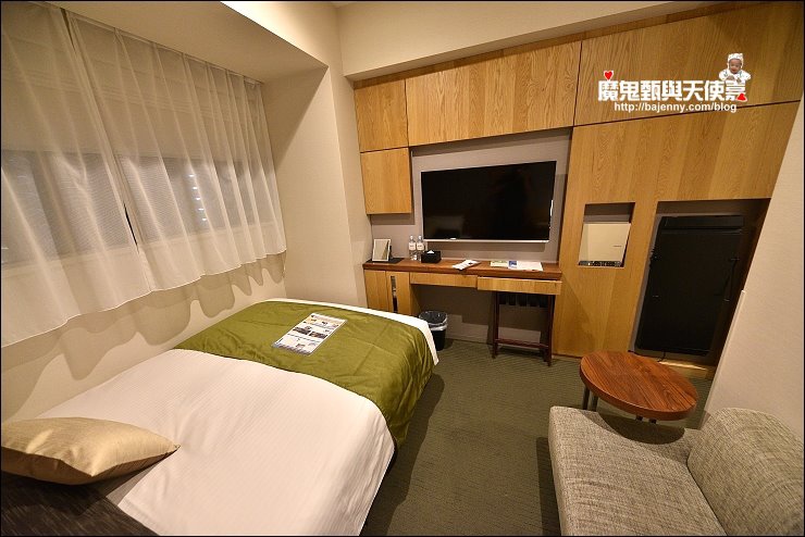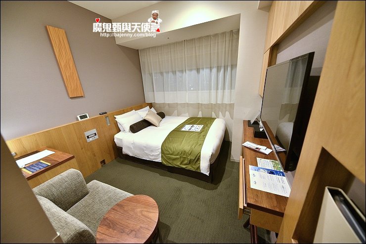 房間雖然小小的,不過也提供了沙發及書桌,22吋登機箱直接在床邊就可以打開,在吋土吋金的新宿,也沒什麼好抱怨了。