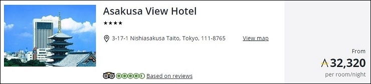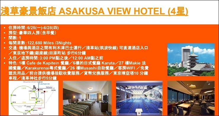 (淺草豪景飯店豪華四人房含早餐以122,680 miles兌換//3Nights)