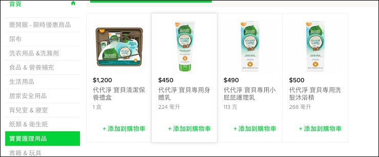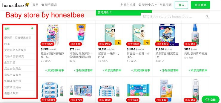 Baby Store by honestbee基本的寶寶用品都買的到,左邊有分類,慶開館-限時優惠商品有入手好價可買。