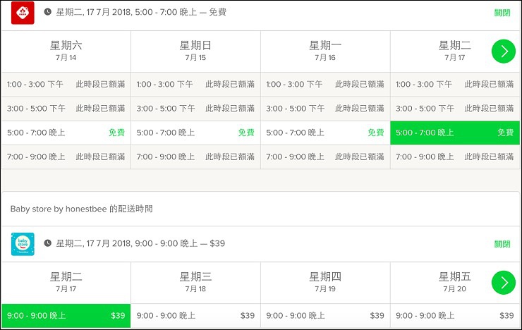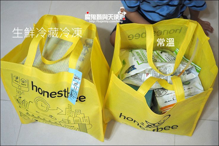 honestbee下單時可以指定宅配送達時間,我分別訂了美福跟babyStore的商品,可以分別指定配送時間,有的商店六日也有出貨,我選同一天到貨最方便,到貨前宅配人員還會先來電確認!冷凍冷藏跟常溫的分二袋裝,而且冷凍冷藏商品都有另外包裝,很細心,不是用制式的紙箱,而是使用可以重覆使用的環保提袋,對省錢的主婦來說很實用。