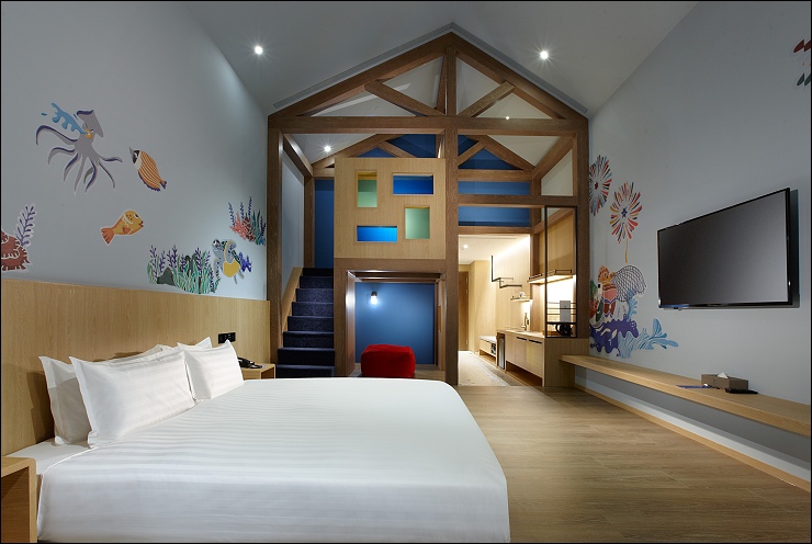 這次快閃團的海景親子房型,設有親子浴池,木造樹屋設計的上下兩層小閣樓,是小朋友最愛的秘密小天地。