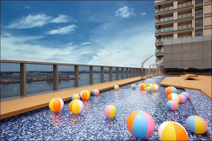 特色5:無邊際的高空游泳池,不論白天或夜晚皆可享受真正的海天一色美景。
