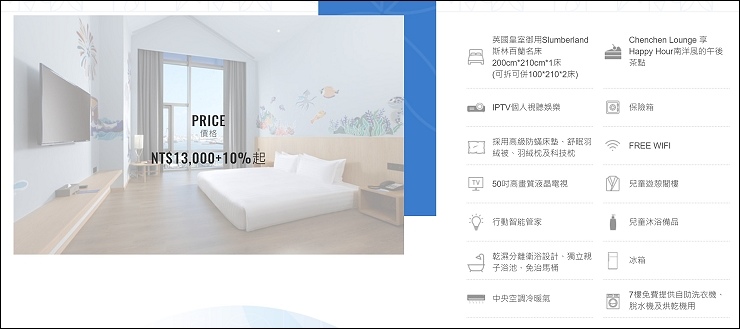 房型:四季澎湖灣客房(港景一加大床200*210cm+單人床墊100*210cm),附親子浴池