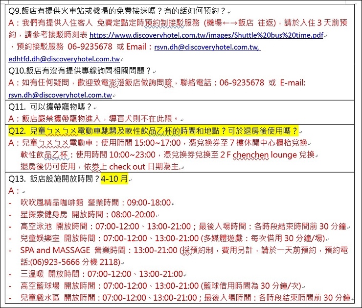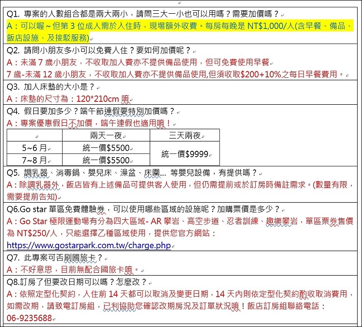 ※訂房相關問題都可以電詢飯店協助→ 06-9235678 ※