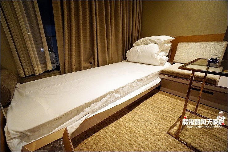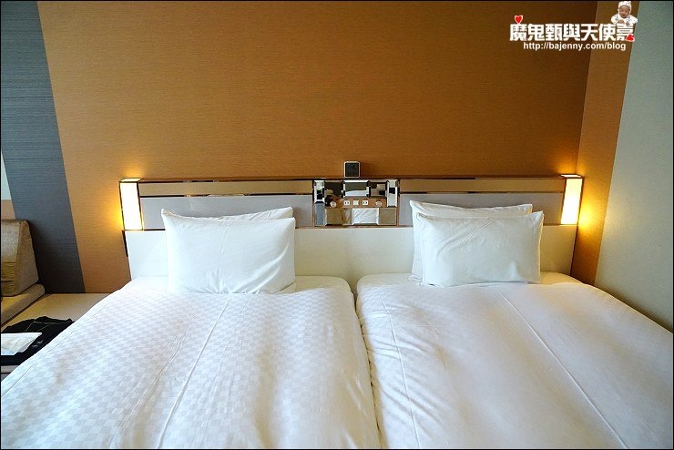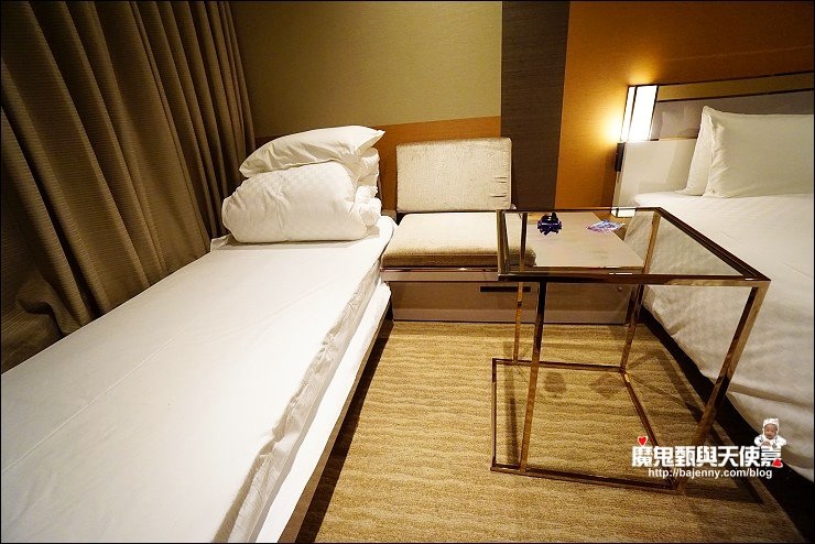 因為有帶4歲小阿弟,飯店很貼心幫我們併好床,每張床各二顆枕頭,雙床房各有110公分,併起來很大,二大一小睡起來一點都不擠。