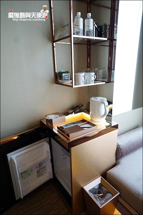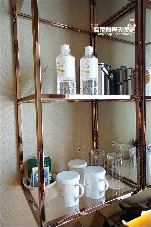 飯店提供免費礦泉水,茶包、咖啡及冰桶都有附。