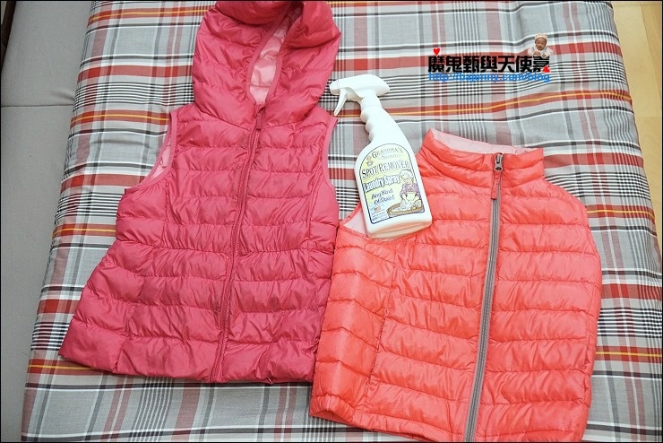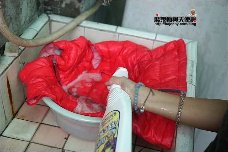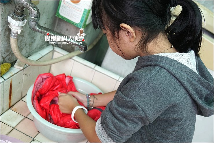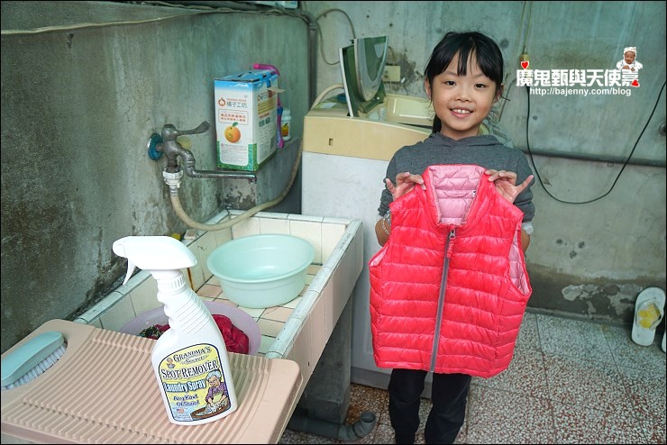假日趁天氣好把女兒抓來洗衣特訓(我好像後母啊~~~嘿嘿嘿),由可愛的小幫手來做示範,自己的衣服自己洗啊!首先拿兩件妹妹每天穿的羽絨背心來試,前面靠近拉鏈處圈起來一大片都灰灰黑黑的,抱歉實在很難拍出來,得趕快動手洗才行,不然大叔一度嫌怎麼可以讓他的愛人穿髒衣服想丟掉…
