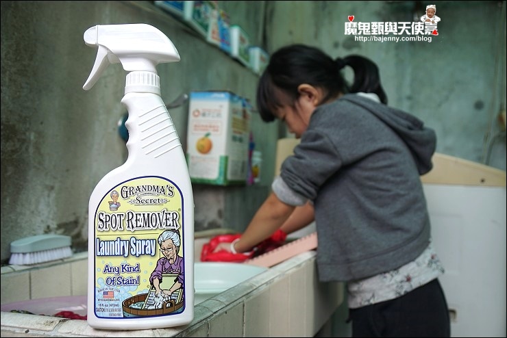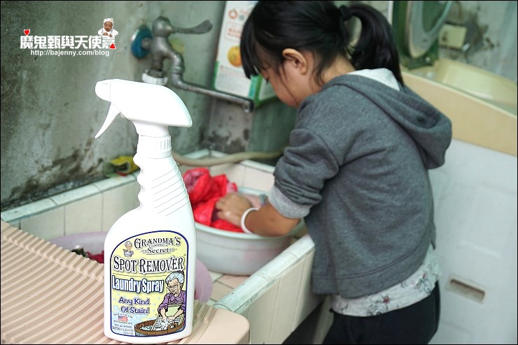雖然方法不是很正確,但經過妹妹的努力不懈(她真的好認真),後來連洗衣板都運用上,最後結果令人期待,只是洗衣服需要手上戴那麼多配備嗎XD。妹妹洗完後超有成就感,其實污漬有沒有不見這時就明顯見分曉!我們後來又浸泡了一段時間再丟進洗衣機就大功告成。洗的過程中沒有刺鼻味也不咬手,大家可以買回去試試~~