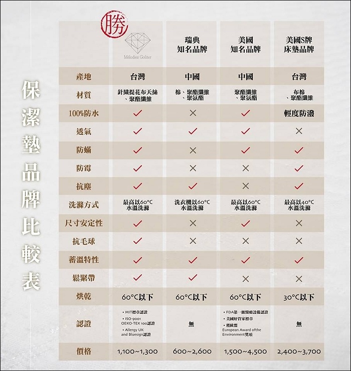 這次既然趁此機會汰換掉枕頭,也要好好保護家中的床墊喔!這家台灣廠商專門幫國外廠牌代工,沒有在台灣販售,國外售價是50美金,團購價壓在千元上下,四種尺寸價格不一,預購結團後7~14個工作天發貨!說到這保潔墊真的是相見恨晚啊~~