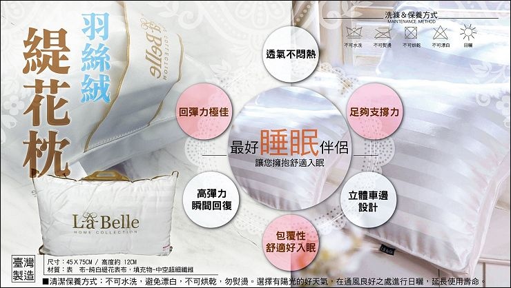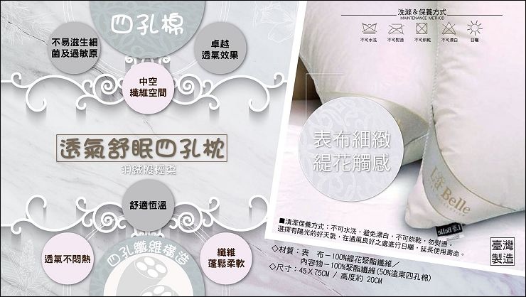 枕頭的柔軟度讓你一躺就融化,立體車邊設計,擁有絕佳的支撐性、透氣性,有效散出多於濕氣,適合容易流汗的體質及不使用枕套者,超細纖維還能減少塵蹣生長。