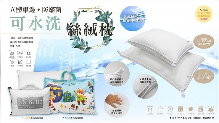 ✅如果你喜歡睡軟枕,不用考慮就是水洗枕這顆,有分大人及小孩尺寸