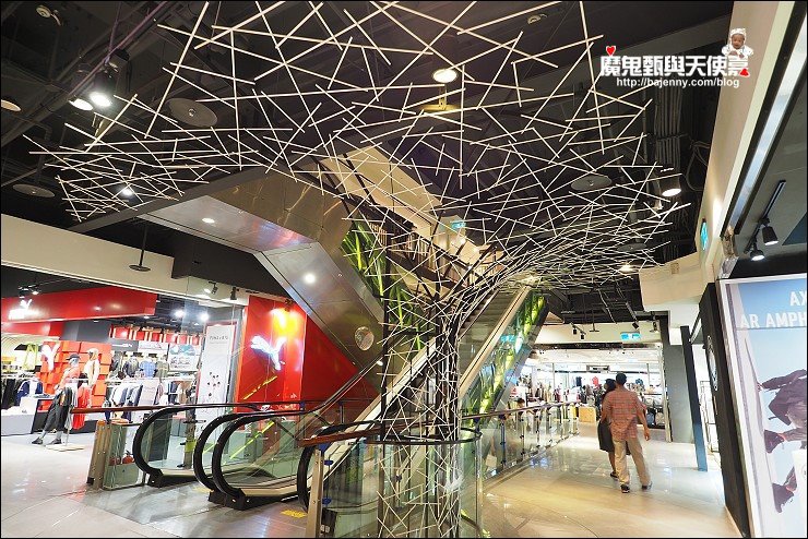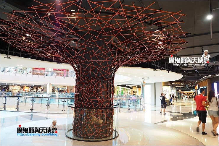 大江購物中心的設計就是給大家大大的空間,設計感十足,逛著逛著會遇到紅、白二個鐵樹,這可是得了設計獎,使用鐵棒堆砌出來的,獨特創作設計概念很受阿弟爸的喜歡。
