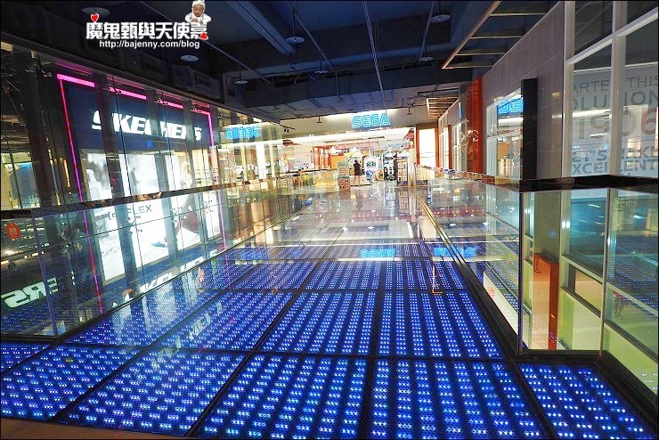 銜接娛樂遊戲區通道打造未來感之玻璃空橋,會不定時變換顏色的LED燈光,SEGA,這根本就是孩子們的天堂,超多遊樂設施可以玩,小小孩可以玩撈魚等小遊戲,大小孩在大型機台遊戲區大玩賽車及戰鬥遊戲,還有TOMICA及LEGO樂高區,光這幾個地方就可以讓小孩玩到不肯走啦!