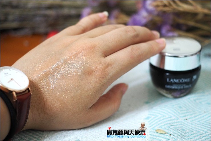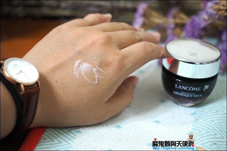 「超進化肌因亮眼精粹霜」不像乳霜那樣濃稠,反而是很輕盈的凝霜質地,輕輕一抹就能釋放精華成分,清爽好吸收,觸感很很細緻,沒有我最怕的厚重與黏膩感,眼周不容易因太滋潤或吸收不了而長小肉芽,這瓶眼霜輕盈好吸收,讓眼周沒有負擔,修護眼周輕輕鬆鬆。建議在擦保養品的時候,順便在臉上、眼周、太陽穴等地方做些簡單的按摩,可以促進循環,從內美到外。